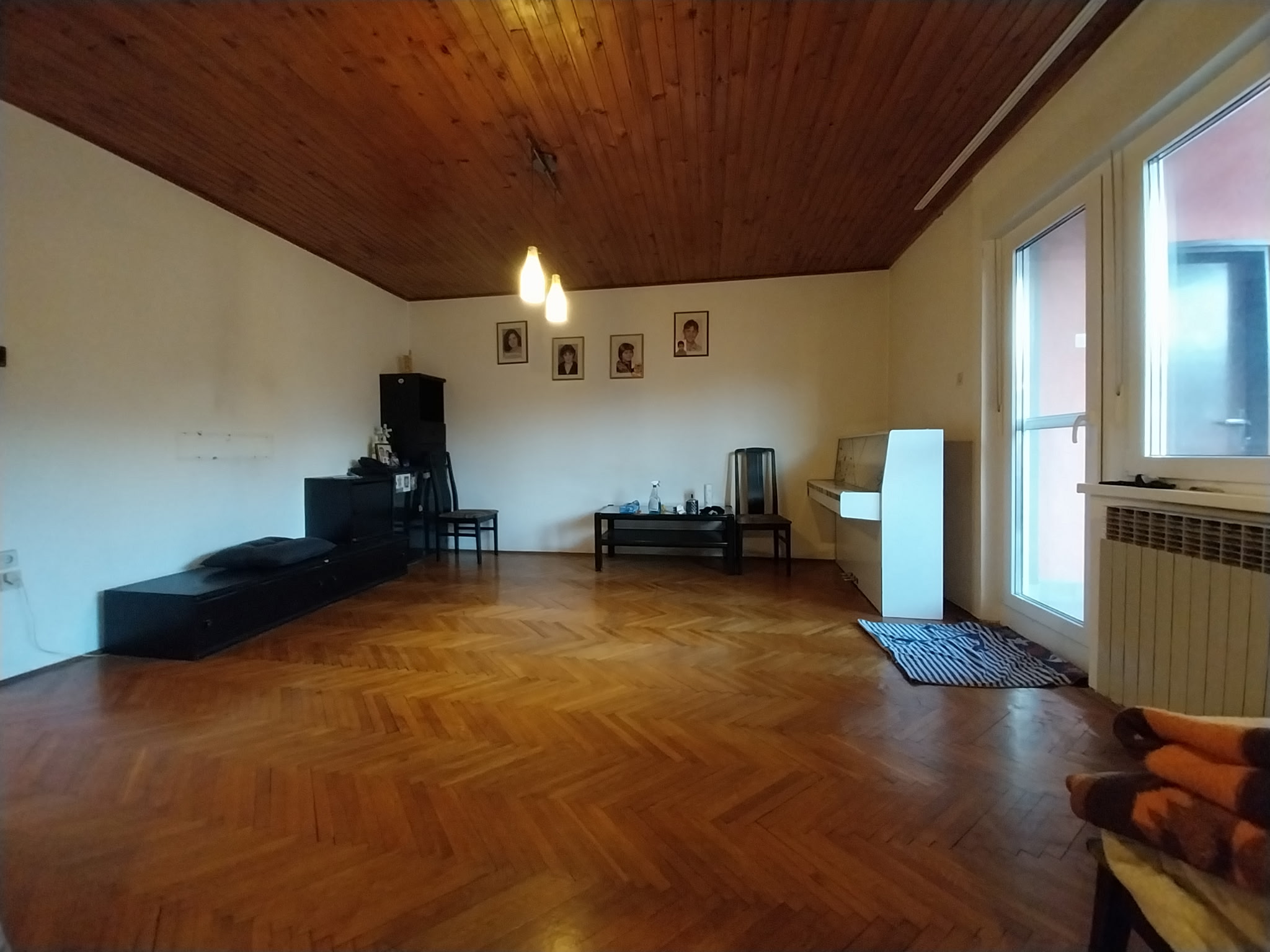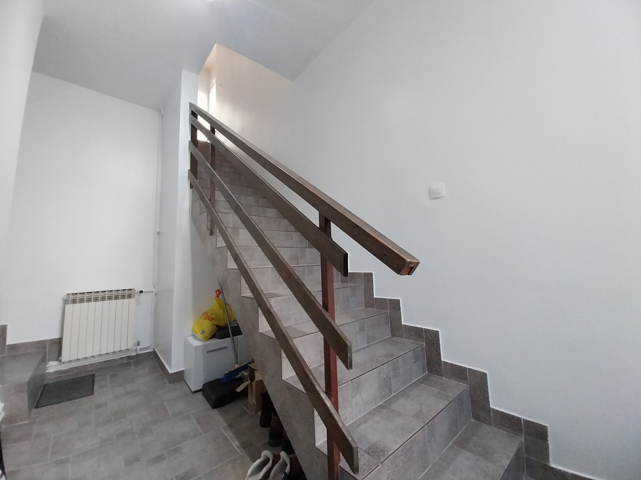 Prodajemo stambenu kuću s dva stana u visokom prizemlju i na katu povezano stubištem u Donjem gradu. Prizemlje kuće građeno je početkom 70-ih, dok je kat izgrađen dvadesetak godina kasnije. U prizemlju stambene kuće nalazi se ulazni hodnik sa stubištem, koji vodi u hodnik prizemnog stana koji se sastoji iz hodnika, kupaonica, dvije odvojene spavaće sobe te dnevni boravak koji je povezan s kuhinjom i blagovaonicom te izlaz na dvorišno orijentiranu terasu iz koje se može otići u manju ostavu. Na katu kuće nalazi se hodnik, kupaonica, dvije spavaće sobe, prostrani dnevni boravak povezan s kuhinjom i blagovaonicom s izlazom na balkon. Grijanje u cijelo kući je centralno plinsko, bojleri u kupaonici i kuhinji su strujni, postavljen je i klima uređaj. Kuća ima i podrum u koji se ulazi s dvorišta, a u dvorištu su dvorišne zgrade (garaža, ostava). Uz kuću je i jedna prostorija koja koja ima zaseban ulaz iz dvorišta, a može se koristiti kao ured ili prostorija za neki hobi. Kuća je unazad 5 godina adaptirana (nove instalacije, keramika, podovi, vanjska stolarija s protuprovalnim vratima, krovište…). Kuća je orijentirana na istok i zapad.